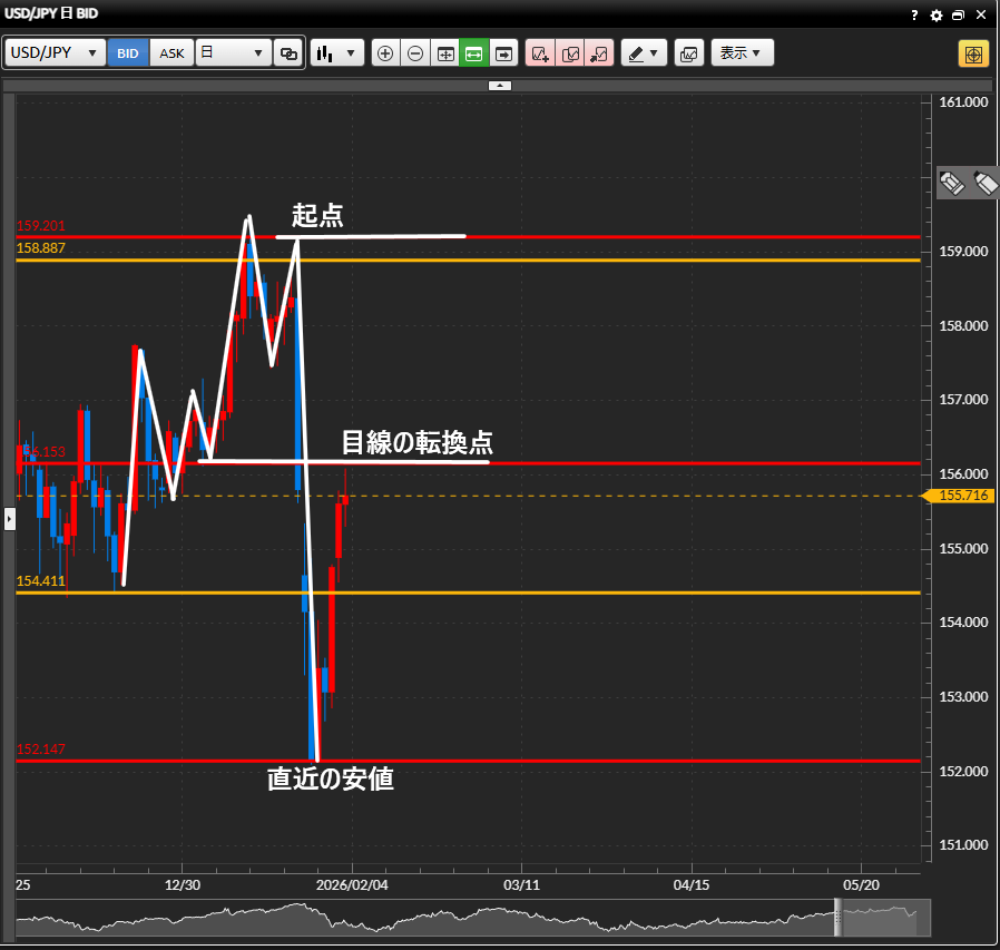 今日の【2026年2月4日】のドル円の環境認識をまとめました。♪(^∇^*)