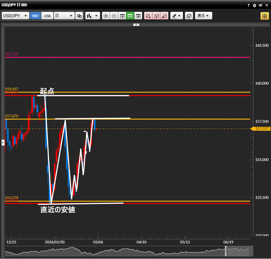 今日の【2026年3月5日】のドル円の環境認識をまとめました。♪(^∇^*)