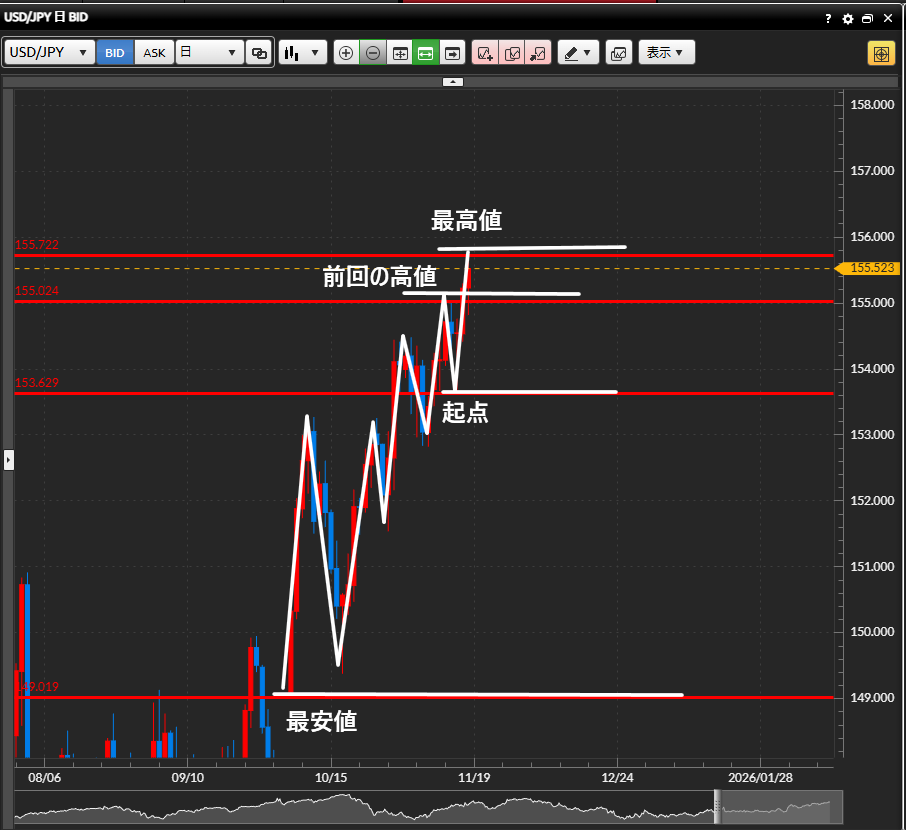 今日の【2025年11月19日】のドル円の環境認識をまとめました。♪(^∇^*)