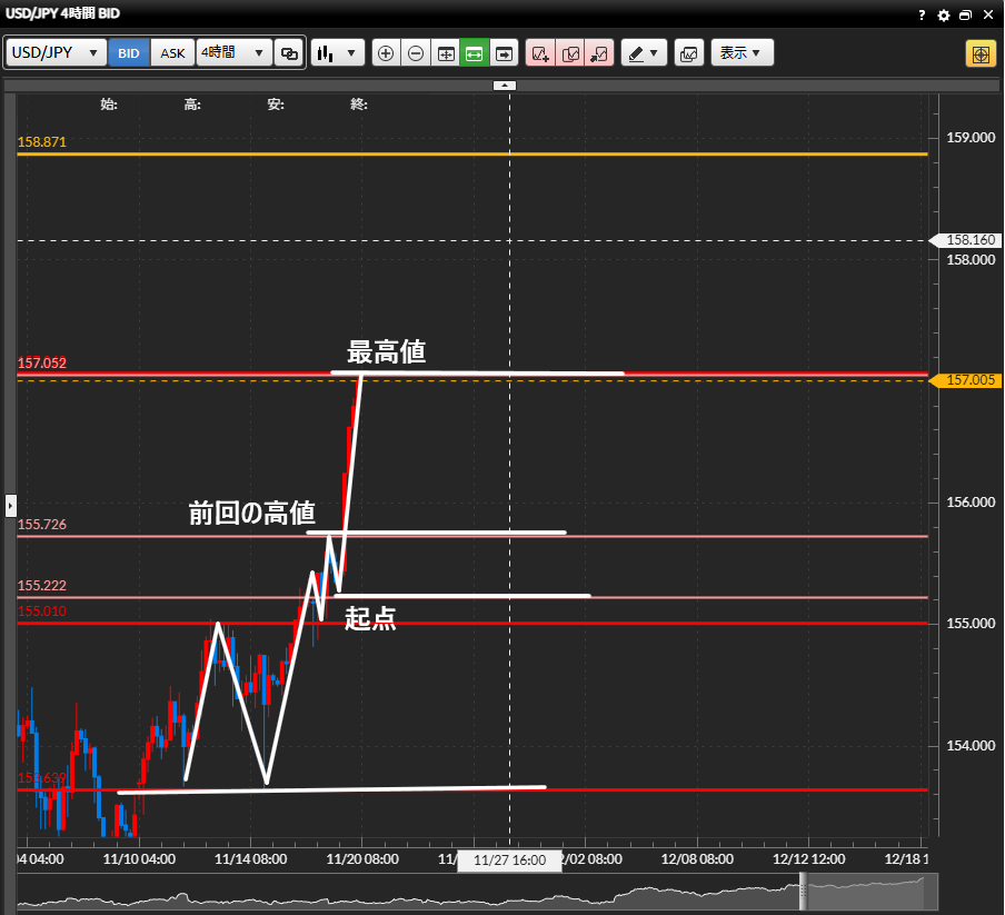 ・4時間足でも前回の高値から一気に上昇しているのがよくわかりますね。