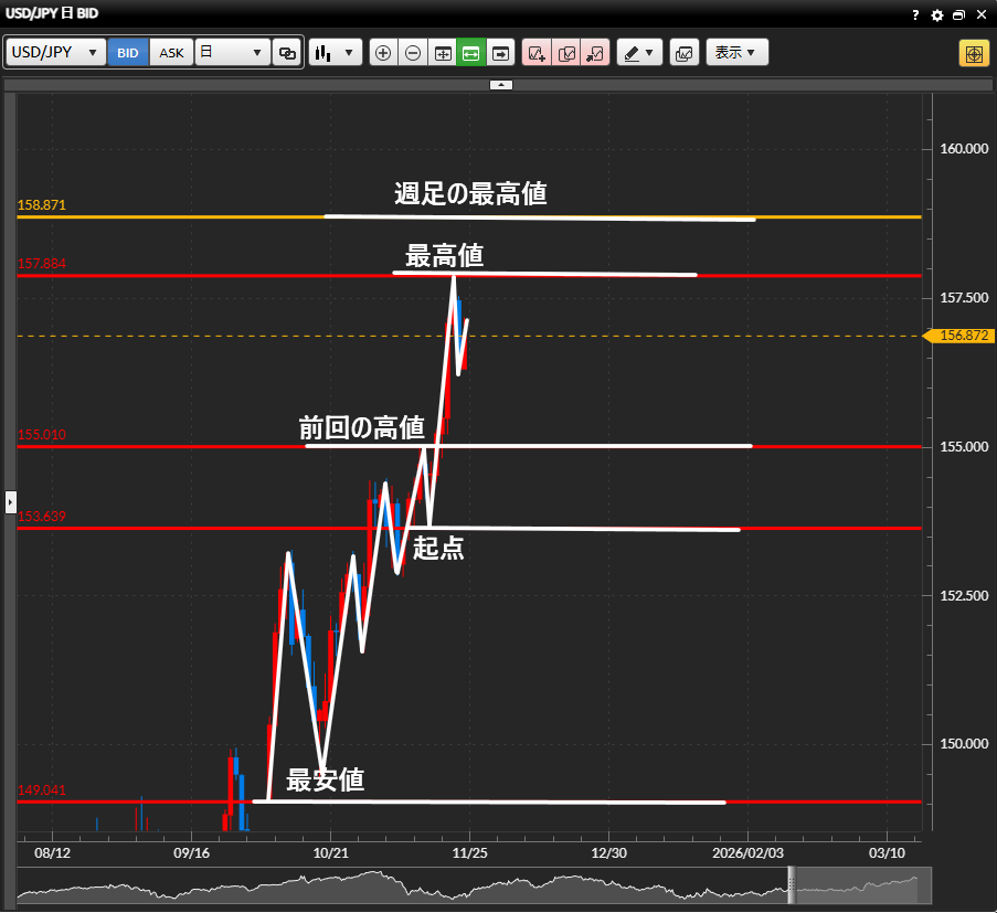 今日の【2025年11月25日】のドル円の環境認識をまとめました。♪(^∇^*)