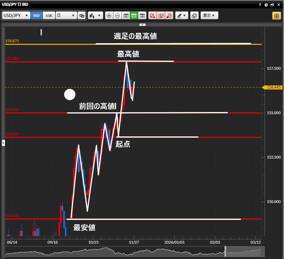 今日の【2025年11月27日】のドル円の環境認識をまとめました。♪(^∇^*)
