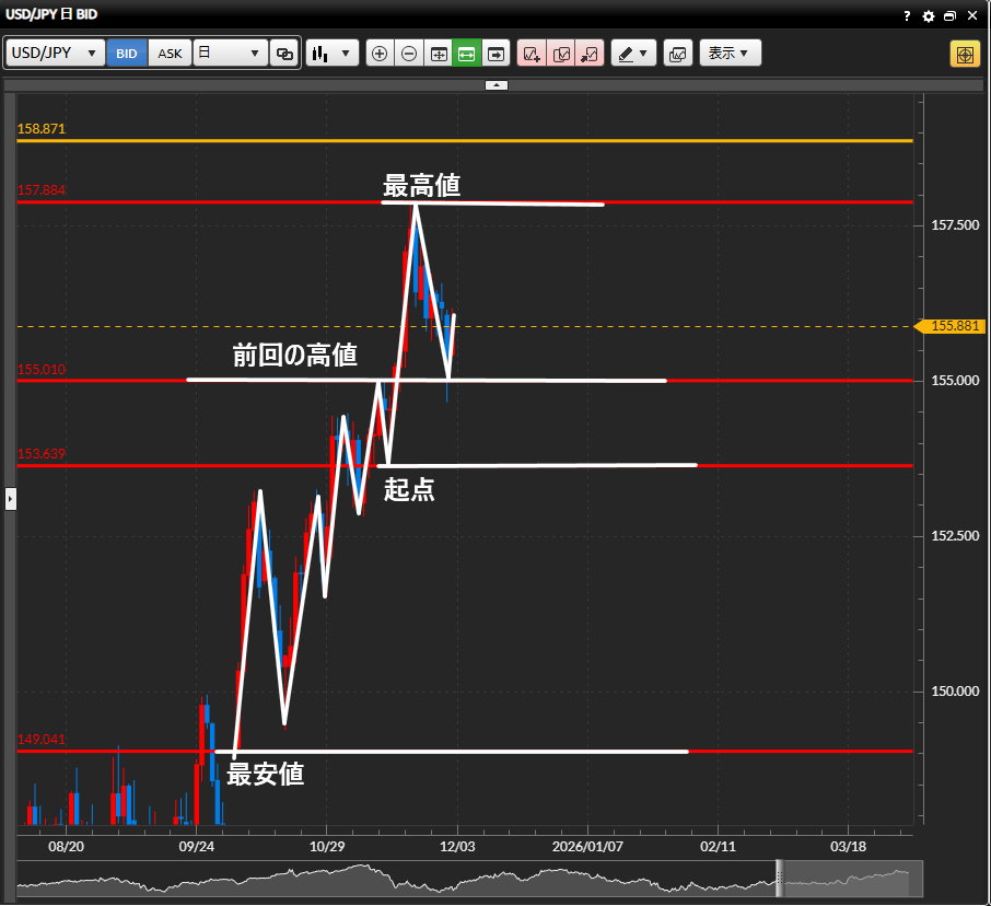 今日の【2025年12月3日】のドル円の環境認識をまとめました。♪(^∇^*)