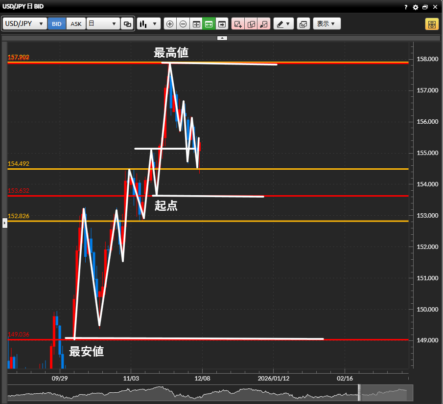 今日の【2025年12月5日】のドル円の環境認識をまとめました。♪(^∇^*)
