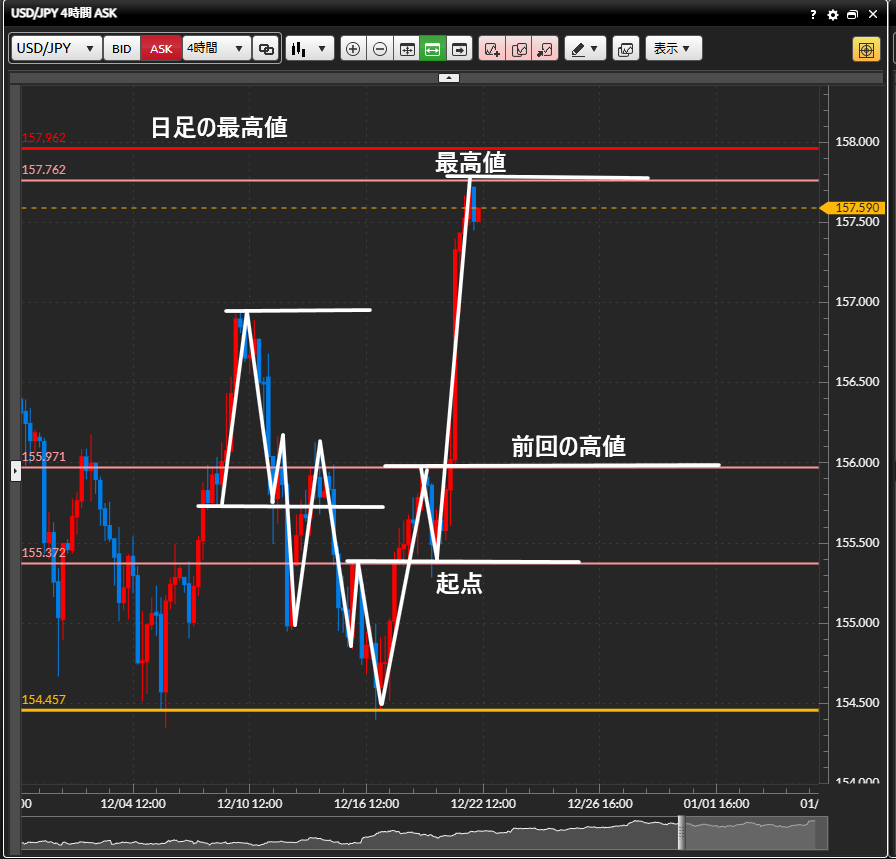 日足で見た流れを覚えておきつつ4時間足を見ていきましょう!