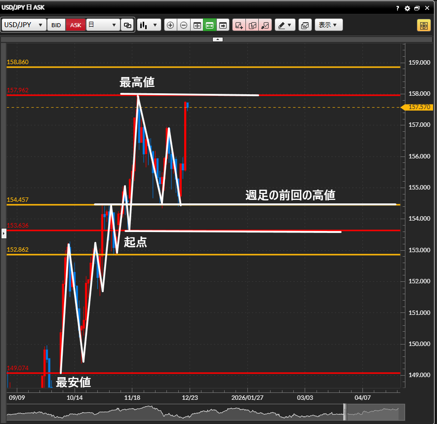 今日の【2025年12月22日】のドル円の環境認識をまとめました。♪(^∇^*)