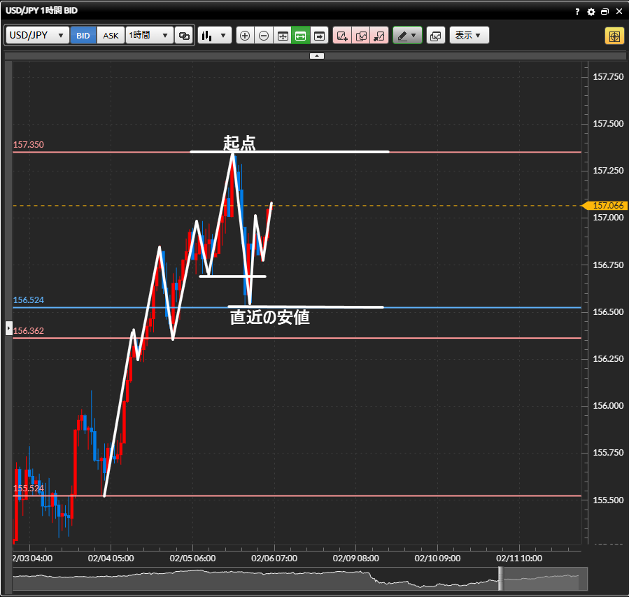 利確目標:1時間足の安値の起点