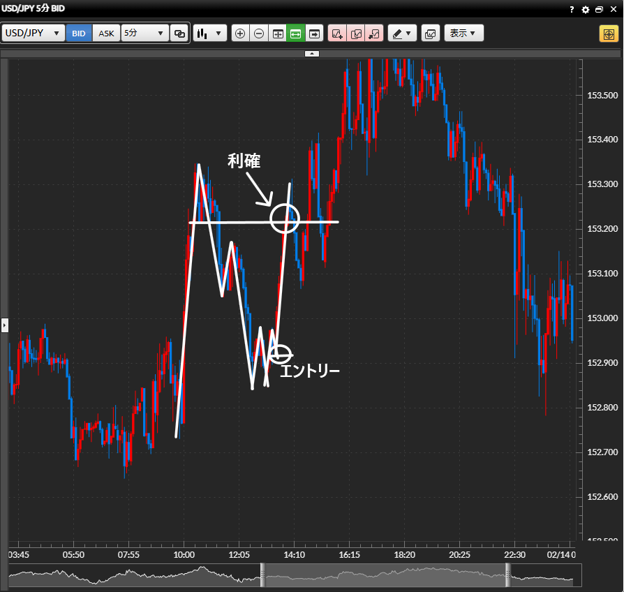 利確目標設定:5分足の直近の高値手前まで