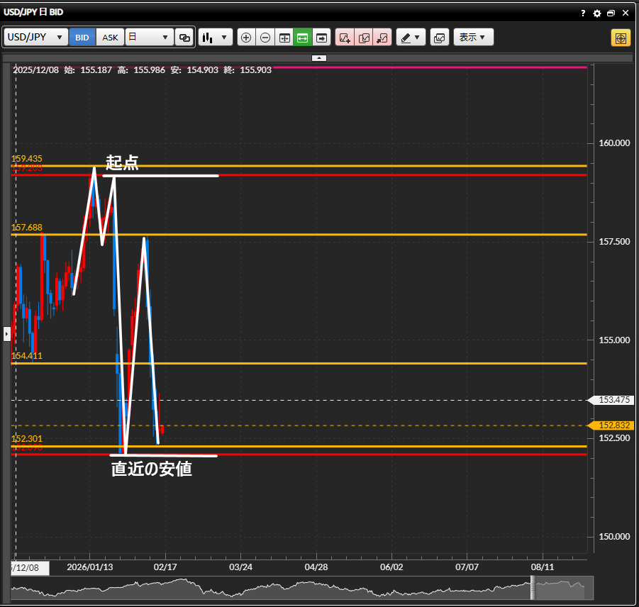 今日の【2026年2月14日】のドル円の環境認識をまとめました。♪(^∇^*)