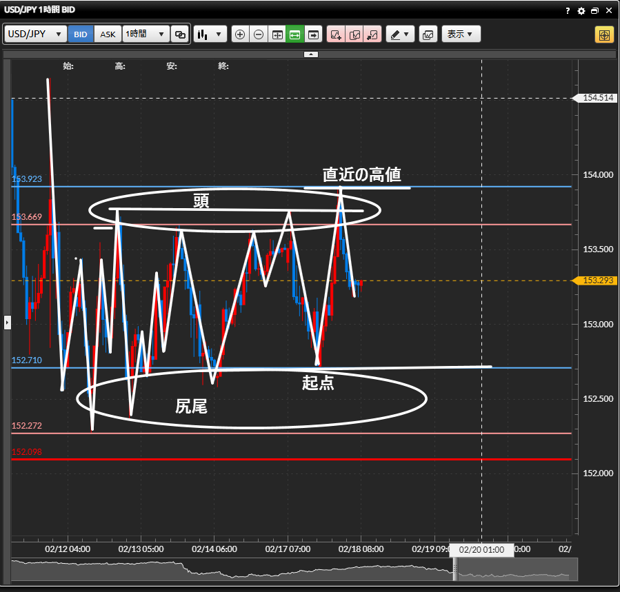 エントリー基準足:1時間足(頭と尻尾の部分の判断に使用)